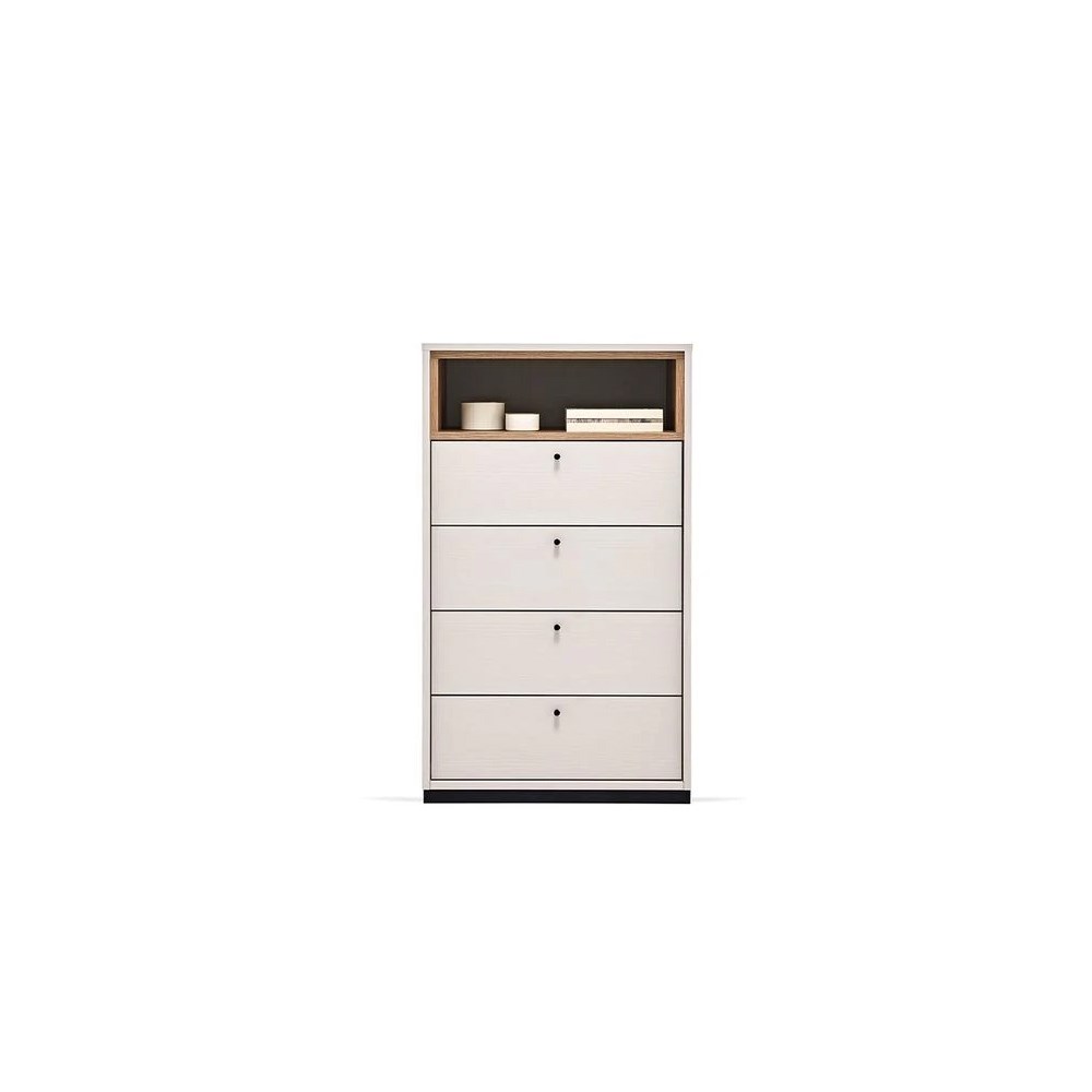 В то время как естественное зеркало на дверцах шкафа придает пространству ощущение стильной глубины, комоды 2 разных размеров отвечают различным потребностям использования.