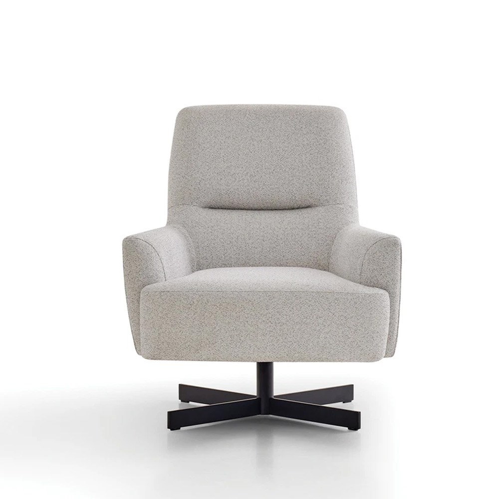 Его современную визуальную концепцию завершают разнообразные альтернативы металлических ножек, позволяющие идеально интегрировать кресло в интерьер, добавляя ему индустриальный шик или лаконичный блеск.