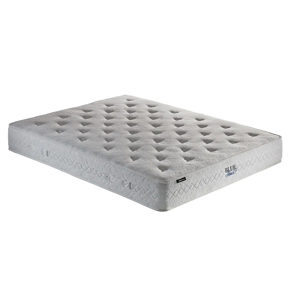 Матрас Blue Star сохраняет анатомический изгиб позвоночника благодаря слоям пенополиуретана высокой плотности и пружинной системе DHT. «Летняя» сторона матраса изготовлена из хлопка, а «зимняя» - из теплой и 100% натуральной шерсти со знаком качест ва Woolmark®
