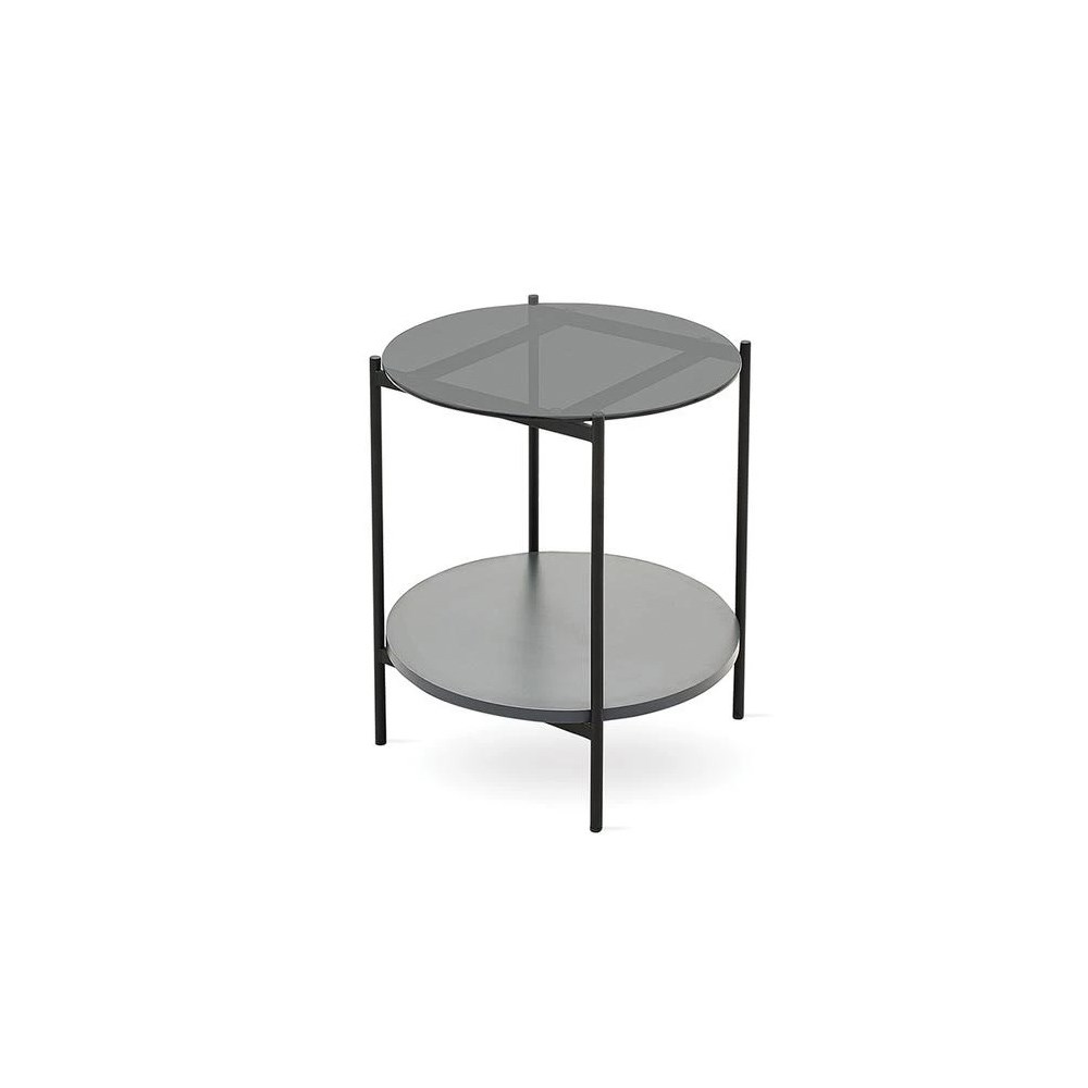 Подчеркивая свой современный стиль благодаря форме ножек из черного металла, RIOSA привносит новое дыхание в жилые помещения благодаря дизайну из закаленного стекла и лакированной полки на его верхней поверхности.