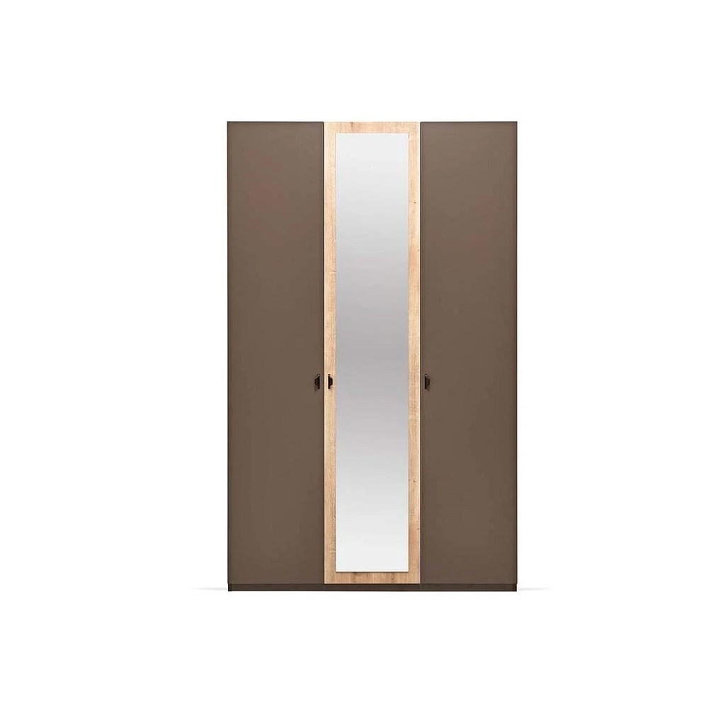 ТРЕХДВЕРНЫЙ ГАРДЕРОБ POLKA привнесет в вашу спальню простую элегантность, скрытую в функциональных деталях, серых металлических ручках и натуральном зеркале.