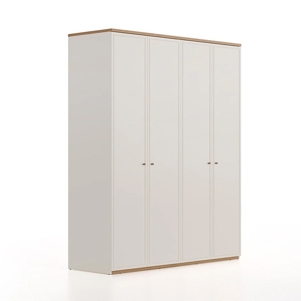 MARSANA 4-дверный шкаф, выделяющийся комбинацией оттенков дуба и кремового, отличается изысканной эстетикой благодаря дизайну, дополненному металлическими ручками цвета «норка».