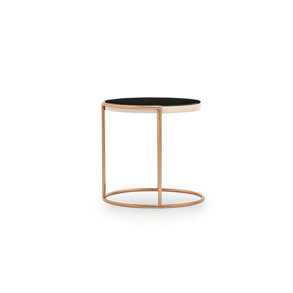 СТОЛ VIENNA, подчеркивающий элегантный стиль серии своей округлой формой и деталями дизайна, привносит утонченность в современную концепцию оформления. ПРИСТАВНОЙ СТОЛ VIENNA со стильным внешним видом благодаря металлическим ножкам цвета розового золота, завершающим дизайн модуля приставного столика, создает вдохновляющие фантазии.