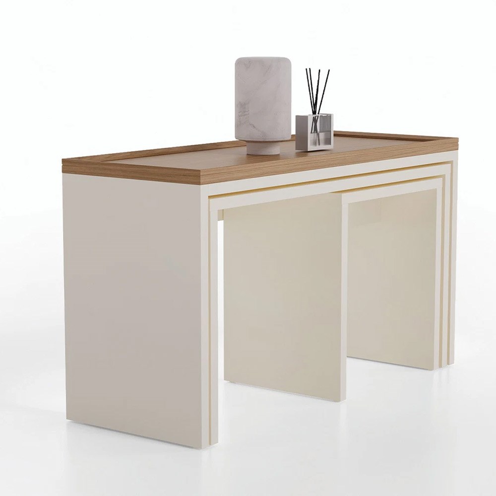 Набор из трёх столиков MARSANA, выделяющийся деталями из деревянного профиля и прочной конструкцией, привлекает внимание гармоничным сочетанием цветов «дуб» и «крем».