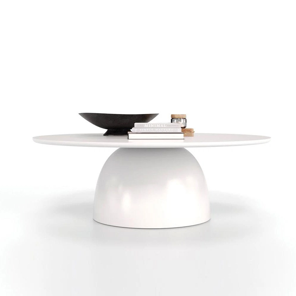 Круглая верхняя поверхность и матовая лакированная отделка подчеркивают современный подход к дизайну, создавая простой, но эффектный элемент.