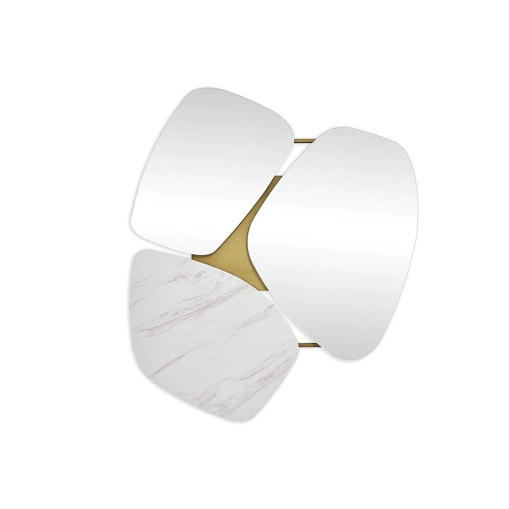 ЗЕРКАЛО VENICE, дизайн которого привлекает внимание своим утонченным и современным стилем, выделяется элегантным дизайном, мраморным узором, а также металлическими и золотистыми вставками, которые завершают серию.